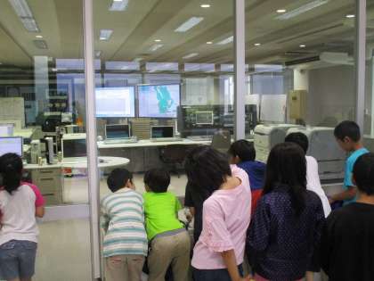 建物の中では,職員の方々が水質検査やコンピュータの制御をおこなわれていました。羽束師の街だけでなく,桂川右岸の広い地域のたくさんの人たちの生活を支えてくださっているお仕事だと知り,質問もたくさんして深い学習ができました。