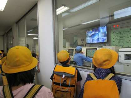 ごみ処理施設の隣には,リサイクルプラザがあります。こちらでも,たくさん集められたごみと,それを機械で分ける様子をモニターで見ながら制御している様子を見学しました。教えてもらった「ごみを出す時に守ってほしいこと」,ぜひ実行したいですね。