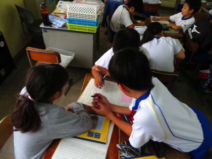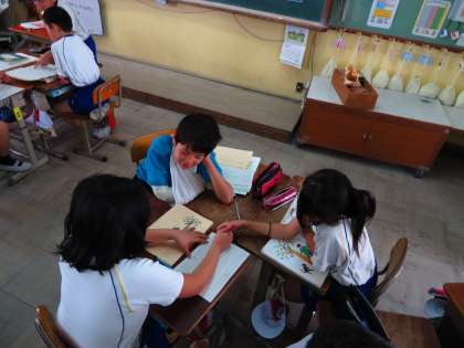 自分の考えも入れて下書きをした要旨を「よりよくするために」友達と交流しました。