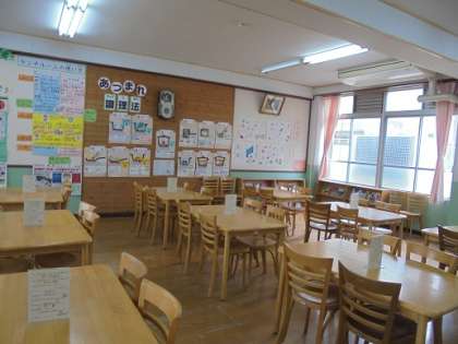 ランチルームでは,個人用のお盆を使って給食を運ぶことや,