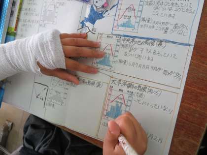 今日は,雨温図から日本各地の気候の特色を読み取りました。