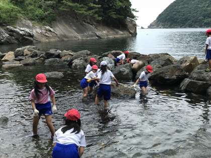 磯観察では、ヤドカリや巻き貝、ヒトデなどが見つかりました。