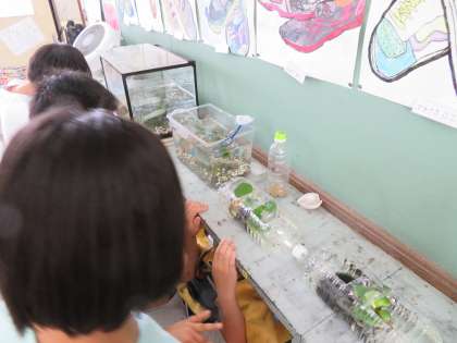 休み時間になると,みんなで集まって観察しています。