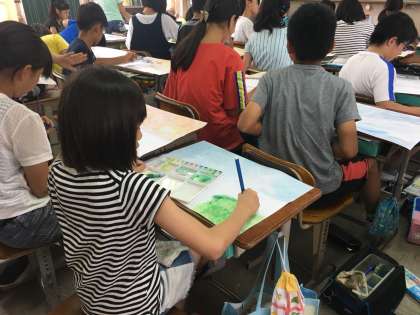 図工で,修学旅行で言った淡路島や徳島県の風景を描いています。