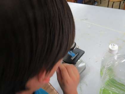 ミジンコやミドリムシを見つけて,スケッチをしていました。