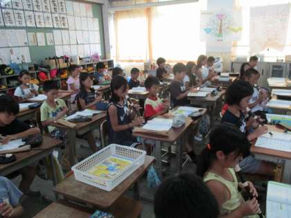 「陽気な船長」「聖者の行進」の2曲を練習しています。スタッカートなどの音楽記号を意識して、音色を工夫しています。夏休みにも頑張って練習して、リコーダー名人を目指しましょう。