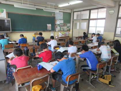 いよいよ夏休みが始まりました。夏休み1日目は早速学習会が開かれています。今日は40名ほどの子どもたちが参加し,熱心に夏休みの宿題をしていました。