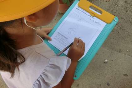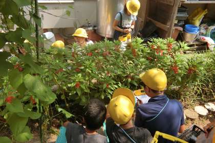 色や形・大きさをじっくり見て観察カードに書いていきました。ホウセンカに花が咲いていて嬉しそうでした。