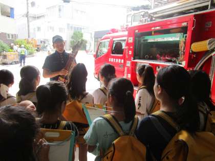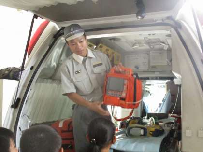 神川消防出張所に見学に行きました。建物の中の設備や,消防車・救急車の装備を見せていただききました。ホースやボンベの重さには,とても驚きました。忙しい中自分たちの仕事について熱くお話してくださった救命救急士や消防士のみなさんのおかげで,とても貴重な経験となりましたね。