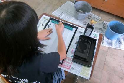 小筆は大筆と違って墨をつけすぎないように,力を入れすぎないように,気を付けていました。一文字一文字丁寧に書くことができました。