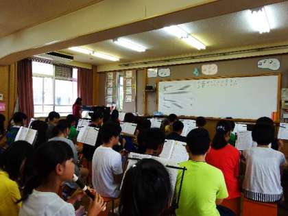 リコーダーの二部合奏で,だんだん美しい音色が響いてきました。