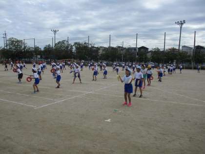久しぶりの運動場練習でした。自分の立ち位置を確認し,パーランクをもって踊りました。入場退場も入れて,全部を通して練習できました!今年はとても雨が多く,貴重な練習の日になりました。