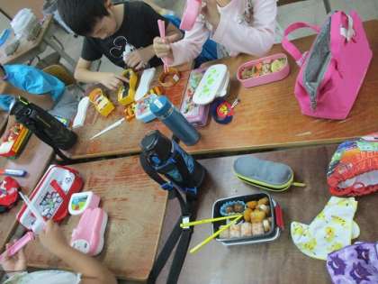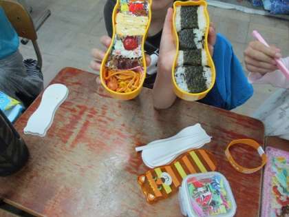 運動会ができませんでしたが,子どもたちはお弁当タイムをとても楽しみにしていました。おうちの人の心がこもったお弁当にみんなにっこり。笑顔いっぱいの,楽しくおいしいお弁当タイムでした。