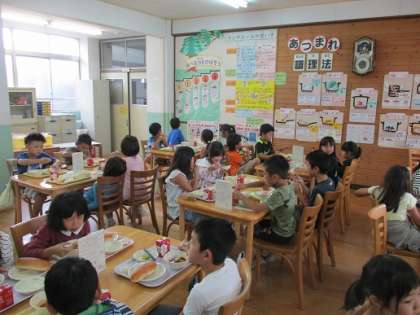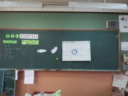 食の学習として「やさいとなかよくなろう」という内容を大杉先生が教えてくださいました。毎日食べている給食にもたくさん野菜が出てきます。残さずしっかり食べることは体にとてもよいことを知りました。勉強した後はランチルームで給食でした。いつもとは違う教室で,マナーを守りながら楽しい給食の時間を過ごしました。