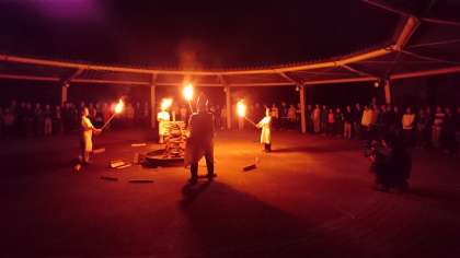 最後の夜,みんなでキャンプファイヤーをして楽しみました。