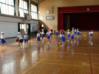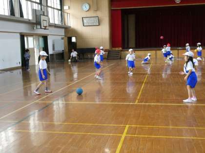 体育館での体育は,「ボールあそび」の学習を進めています。