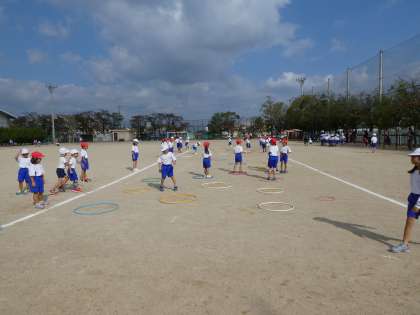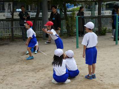 少し高さのあるゴムを両足をそろえて跳んだり,