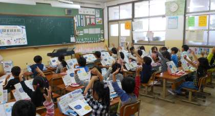 1年生は2学期から鍵盤ハーモニカの学習が始まり,毎回たのしく吹いています。ファとソの指遣いに苦戦しながらも,一生懸命取り組んでいました。「はるなつあきふゆ」では,歌詞にかわいらしい振りを付けながら,楽しく歌うことができました。
