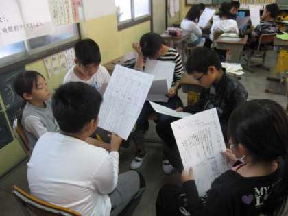 できた新聞をグループで読み合いました。