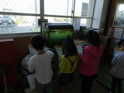 残念ながら,水槽についている苔で観察をする日は