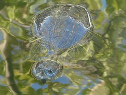 肌寒くなっているため,カメも水の中に潜りっぱなしで,
