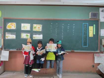 国語では「お手紙」を学習しています。学習したことを生かして音読発表会をしました。それぞれ,グループごとに協力して音読劇をすることができました。がまくんとかえるくんのお話はみんな大好きです。これからも,がまくんかえるくんのお話にたくさん親しんでほしいと思います。