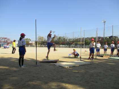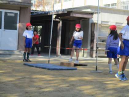 走り高とびは,ハードル走に続いて役割を回しながら学習に取り組んでいます。飛び方が分かって,どんどん記録が伸びてきました。称賛の声もたくさん聞かれ,上達の後押しになっています。