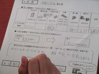 栄養教諭の大杉先生と一緒に,カルシウムを多く含む食品について考えました。給食はカルシウム豊富ですが,それだけでは一日の摂取量に足りていないことを知り,朝夕の食事にどんな工夫ができるかも考えることができました。丈夫な体は,何にも代えられない宝物です!