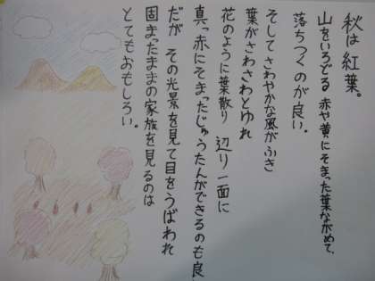 清少納言の「枕草子」の「秋は夕暮れ」を真似て,自分の好きな秋の風景をテーマに詩を作りました。