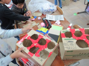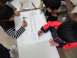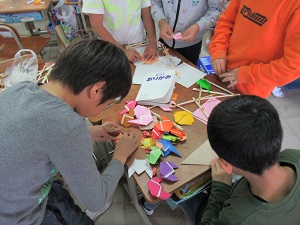 生活科の「ためして あそんで くふうして」は少しずつお店の形になってきました。お店の看板を作ったり,1年生への景品を作ったりしている班がありました。来週,2年生の中で試しにお店屋さんを開いて遊んでみようと思っています。