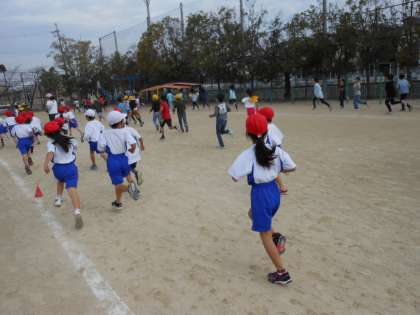 5分間で運動場のトラックを5・6周走れるようになり,少しずつ自分のペースを見つけて,走ることができる子どもたちも増えてきました。がんばれ!その調子!