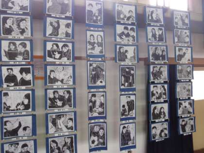 人の肌の感じがでるように彫ったり,場面にあった背景を考えて彫ったりしました。