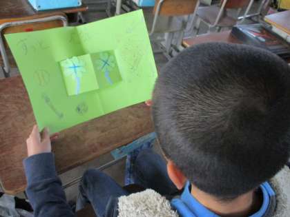 総合的な学習の時間で「みんなにやさしい街」をテーマに学習を進めてきました。その中で,ハートフル京都羽束師,グランメゾン輪舞館にも見学に行かせて頂きました。今回はそのお礼に「幸せを運ぶカード」を作って渡しにいきます。「喜んでくれるかな。」「自分の好きな事を紹介できたらいいな。」と言いながら一生懸命作成していました。感謝の気持ちが伝わるといいなと思います。