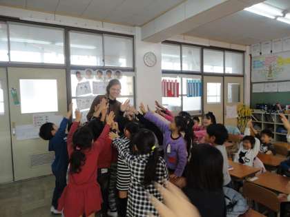 挨拶や歌、自己紹介、ゲームなどを通していきいきと英語を楽しむ姿が見られました。