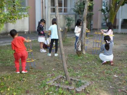 アサガオのつるを外すこと,まとめて丸めるところ,