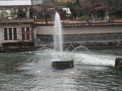 疏水記念館の前に見えたのは大きな噴水です。右側には線路が見えました。「インクラインじゃない?」わくわくしてきた様子の子どもたちです。