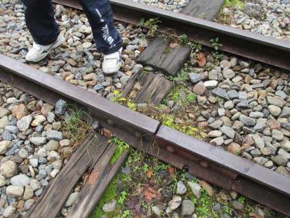 「先生これ,線路のつなぎ目や!この間理科で勉強した!」金属は温めると体積が大きくなるので,線路が曲がるのをふせぐためにすきまが開いていることを学習したところでした。見つけた子どもたちは得意顔,思わぬところで復習ができましたね。