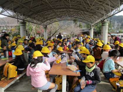 京都市動物園へ移動し,待ちに待ったお弁当タイム。みんながお弁当を食べているこの場所の下に,インクラインのドラム室があったのです。