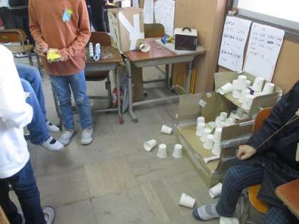 あそびランドではいろいろなあそび屋さんがありました。ピタゴラスイッチやさんにまとあてやさんです。どうやったらうまく転がるか,どんなまとを作ったらおもしろいか,工夫して作りました。