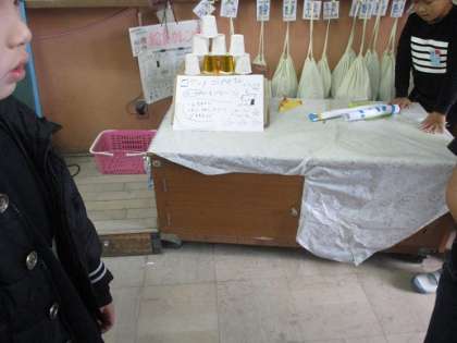 ロケットとばしやさんにキャップとばしやさんです。ロケットを上手に飛ばすためにどうしたらよいか,1年生に優しく教えている姿がありました。キャップとばしやさんは,折り紙で景品もたくさん作っていました。