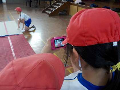 今日は,自分の技が美しくできているか,お互いにデジカメで動画を撮りあって