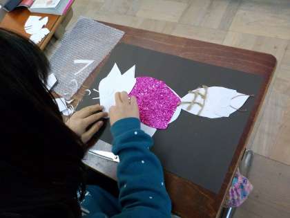 図画工作では紙版画に取り組んでいます。こんな生き物やこんな世界があったら楽しいだろうと想像しながら版を作っています。どんな作品に仕上がるのか楽しみです。
