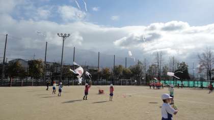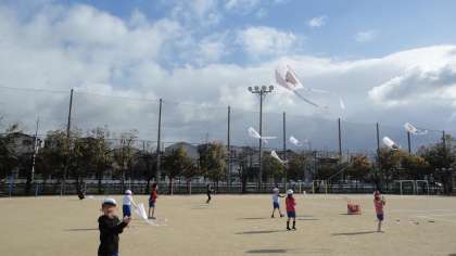 自分で絵を描いて素敵な凧を作り、風にのせて楽しく遊ぶ姿が見られました。