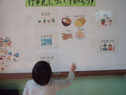 行事食について学びました。お正月に食べる料理や,節分のとき…など行事ごとの違いを知ることができましたね。