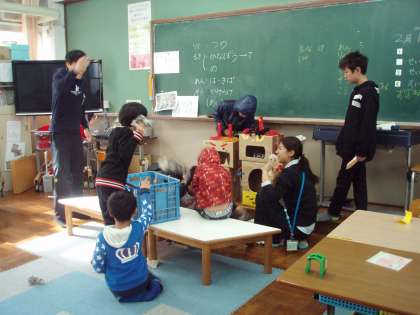 そして,みんなで豆まきの競争をしましたよ。