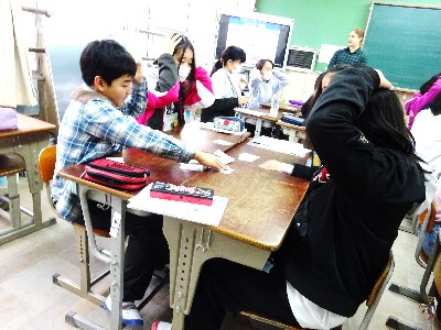 など1日の中の動きを発音していただき,カルタゲームをしました。
