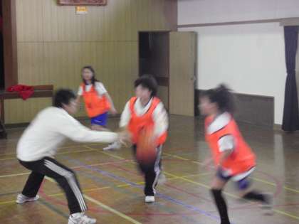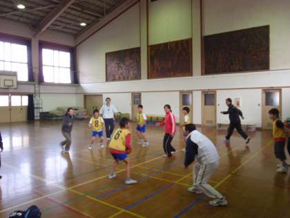 バスケットボール部では6年生チームや先生チームとゲームをしました。