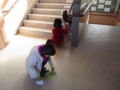 休み時間に,砂がいっぱいの廊下に気付いて自分からそうじをする姿を発見しました。ありがとう!!とっても気持ちがいい姿でした。