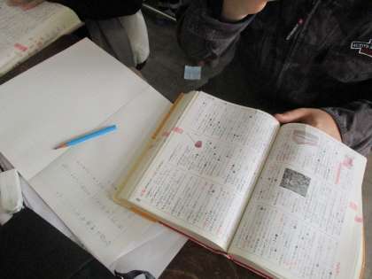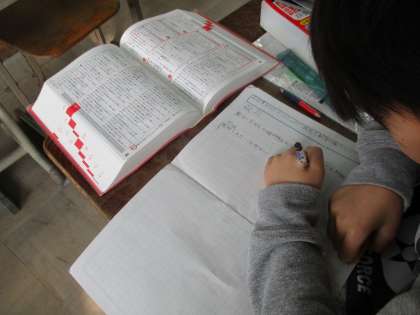 「等分」ってどういう意味だろう。という問いに,「同じぐらいに分けること」と答える子どもたち。辞書でその意味を調べてみると,熟語に使われている漢字の訓読みが手がかりになることが分かりました。「強弱」,「登山」,そのほかにも,と引き始めると楽しくなってくるのが辞書の面白い所です。教室にはページをめくる音だけが響いていました。