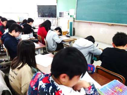 参観日に発表する原稿を読みながら,